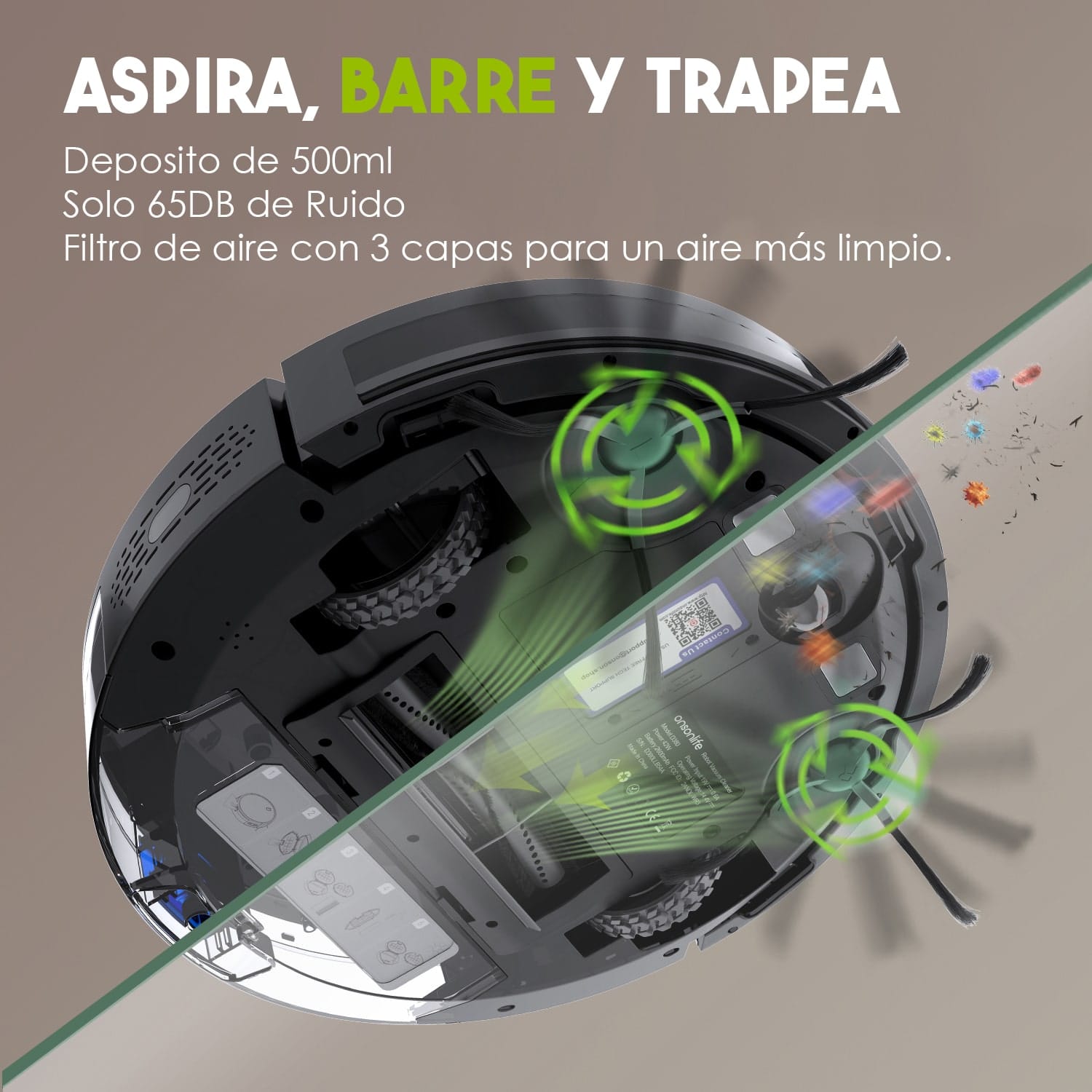 Onson D382 PRO, Aspira y Trapea, Limpieza Ordenada con Mapa 2D, Wi-Fi, Succión 2200Pa (Outlet) - Roboteca