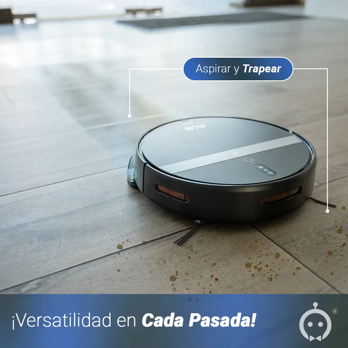 Nuestro robot 2 en 1 no solo aspira, sino que también trapea al mismo tiempo. Ideal para hogares de hasta 100m2 por piso, este