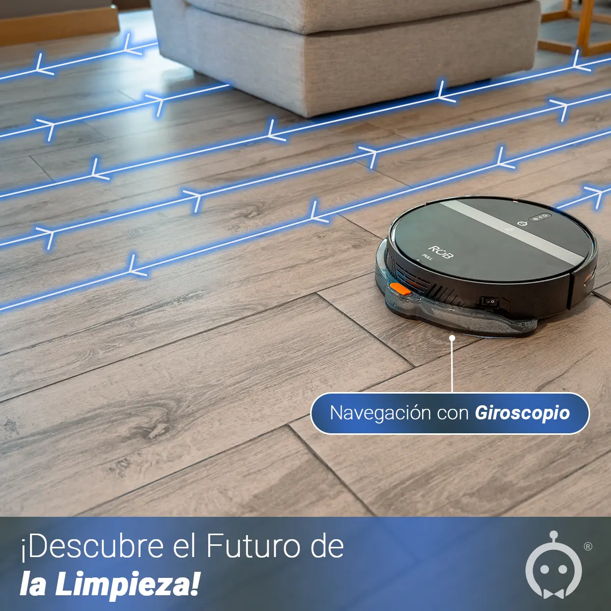 Con la avanzada Navegación con Giroscopio, nuestro robot se desplaza con precisión milimétrica, adaptándose a la disposición de tu
