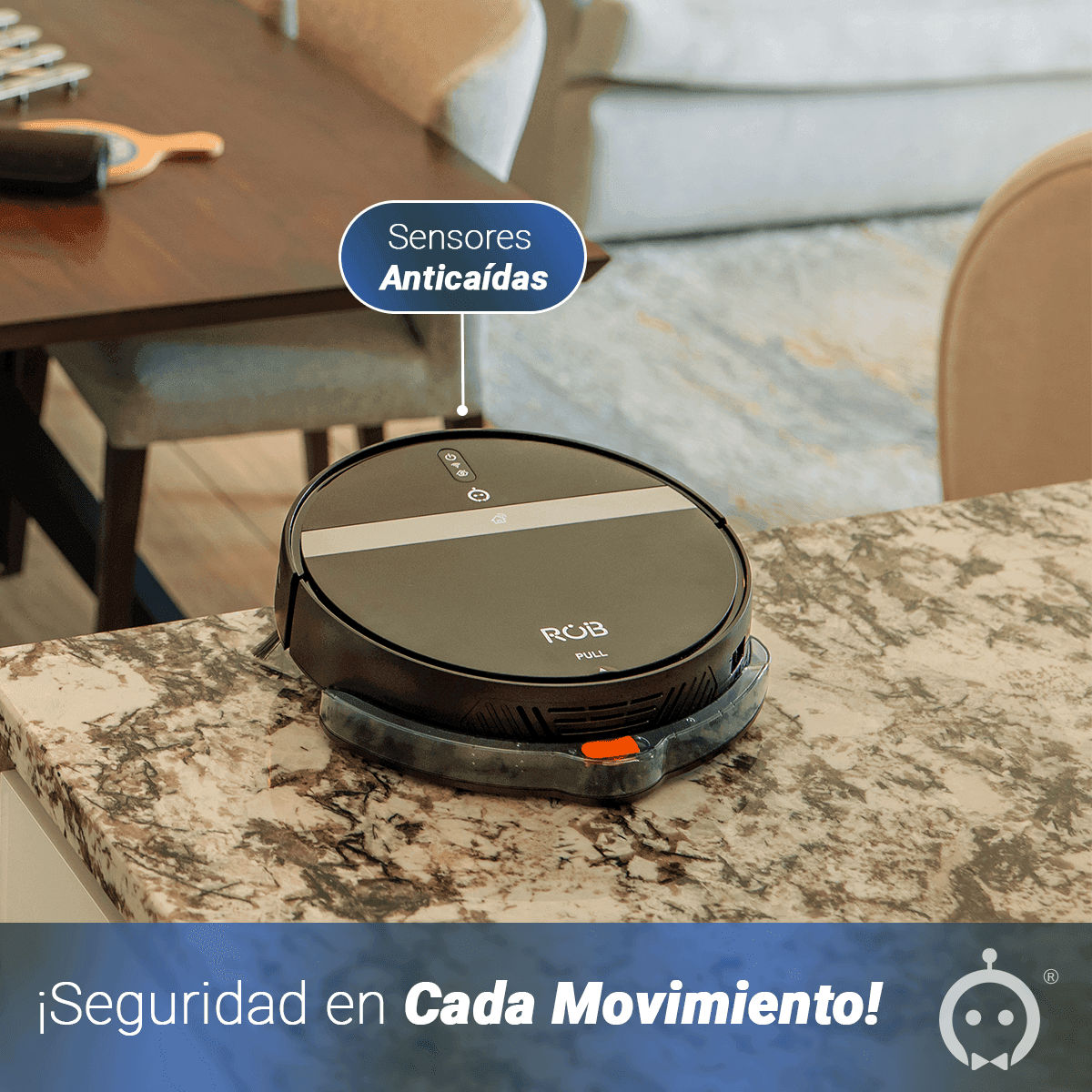 Equipado con sensores anticaídas, nuestro robot navega con seguridad, evitando obstáculos y proporcionando una limpieza confiable.